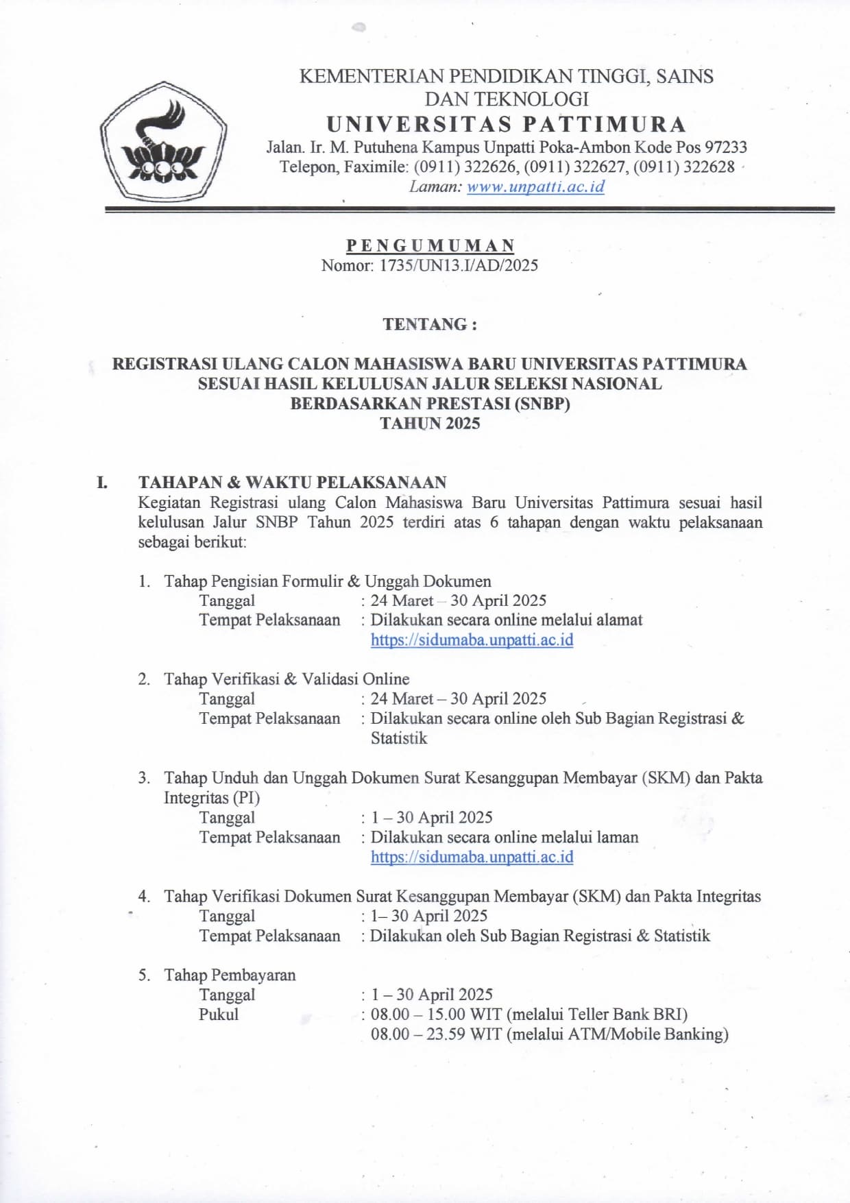 Registrasi Ulang Sekarang https://sidumaba.pmb.unpatti.ac.id/login